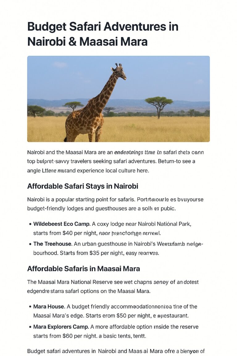 Dreaming of a real African safari without spending thousands? Kenya offers some of the most breathtaking wildlife experiences in the world — and the good news is, it doesn’t have to break your budget. The capital city, Nairobi, and the legendary Maasai Mara National Reserve together form a perfect route for travelers looking for budget safari adventures in Nairobi & Maasai Mara.